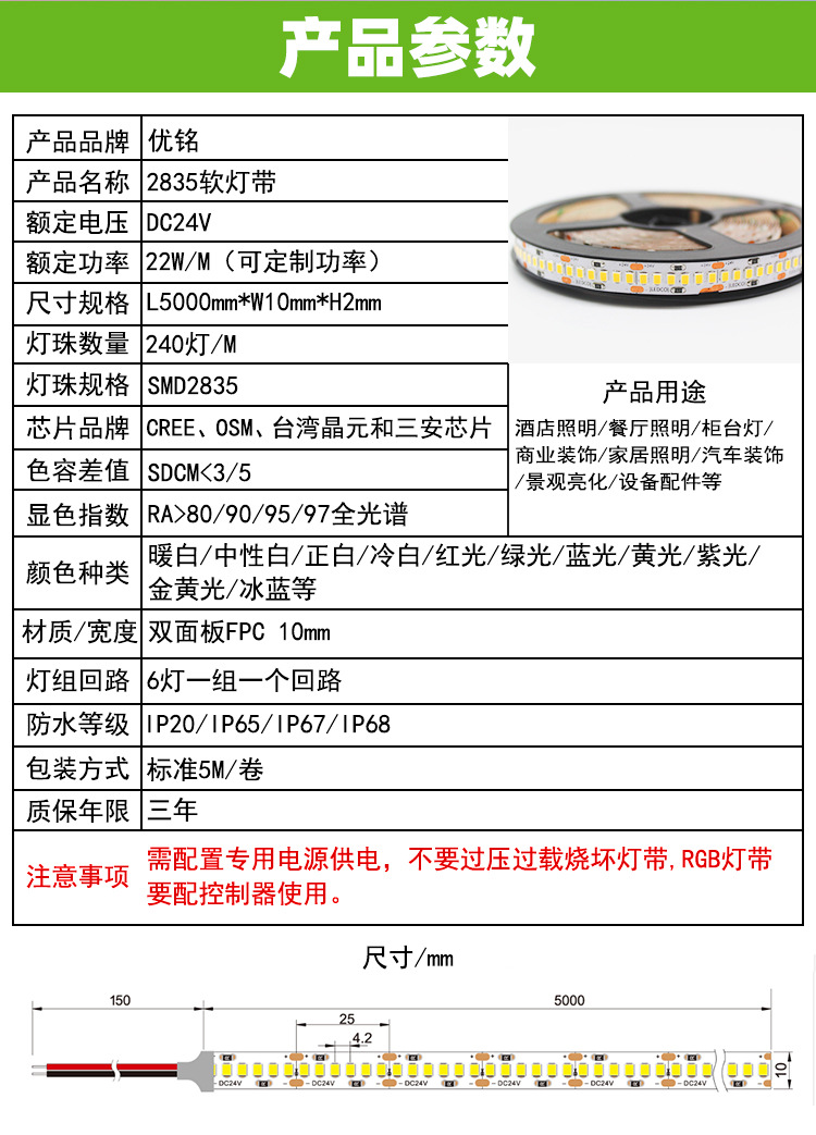 2835系列:30灯/M、60灯/M、120灯/M、168灯/M、180灯/M、196灯/M、240灯/M